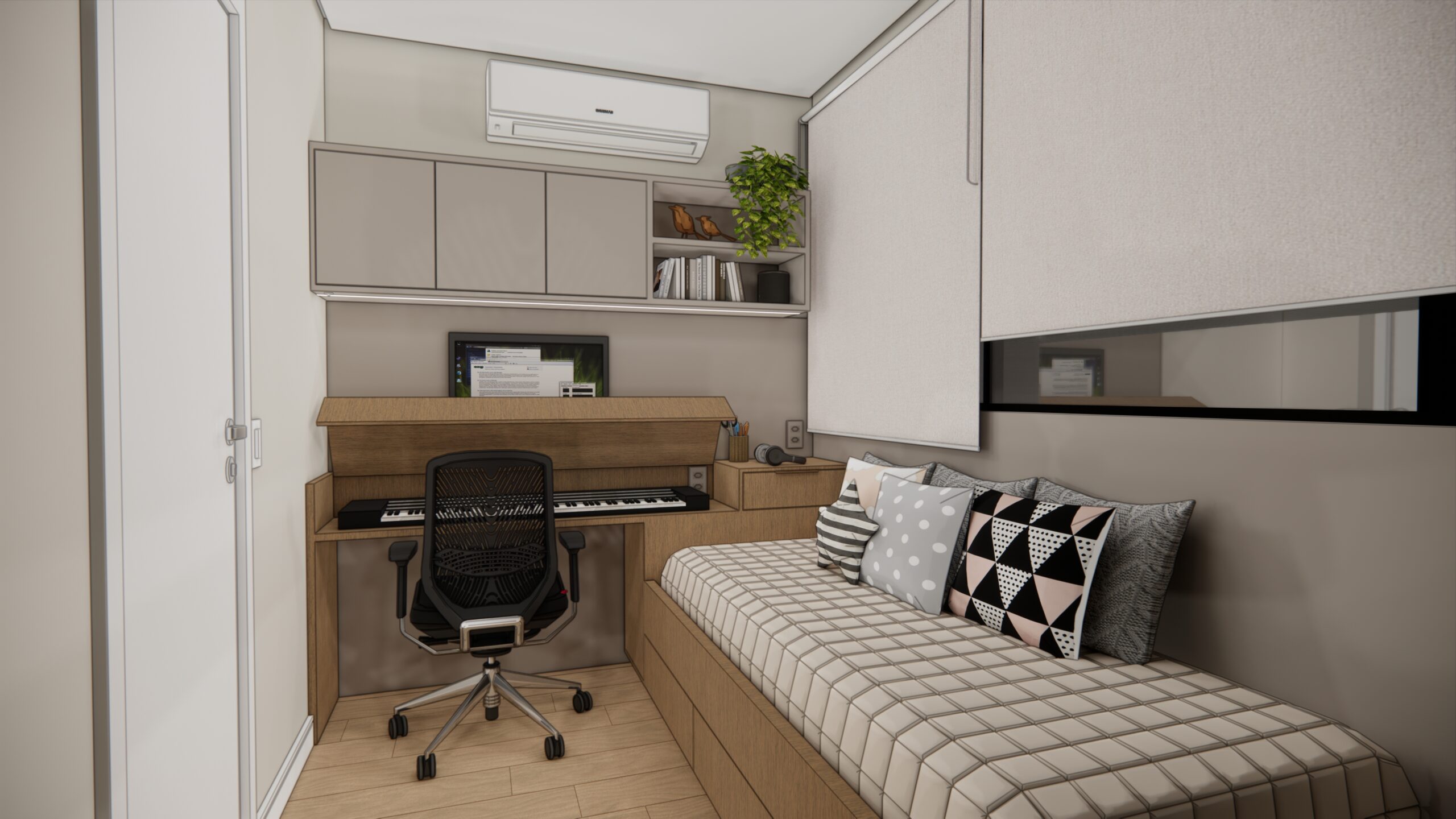 Este apartamento é um exemplo de como é possível aliar design contemporâneo, soluções funcionais e acabamentos de alto padrão num espaço compacto, pensado para viver com charme, conforto e praticidade.
